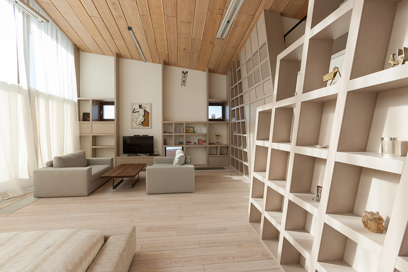 Стеллажи выполнены из МДФ. Без шпона, Без покрытия эмалью… Только грунтовка и слой матового лака. Никаких декоративных приемов, только форма!